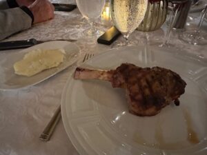 Linguini with white clam sauce with the shellsLinguini with white clam sauce without the shellsBone in 14 oz Veal Chop with sautéed mushroomsAmazing wine that our friend Brian brought to dinnerAmazing wine that our friend Brian brought to dinner